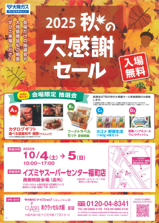 ※終了致しました※10月4日・5日「2025秋の大感謝セール♪」開催!【クラッセル大阪】