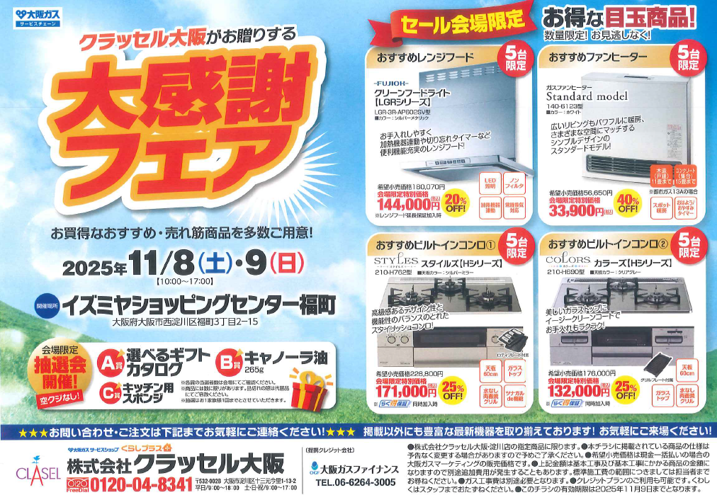 11月8日・9日『大感謝フェア!』開催!【クラッセル大阪】